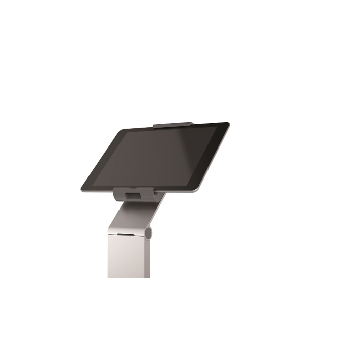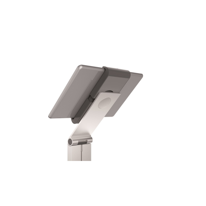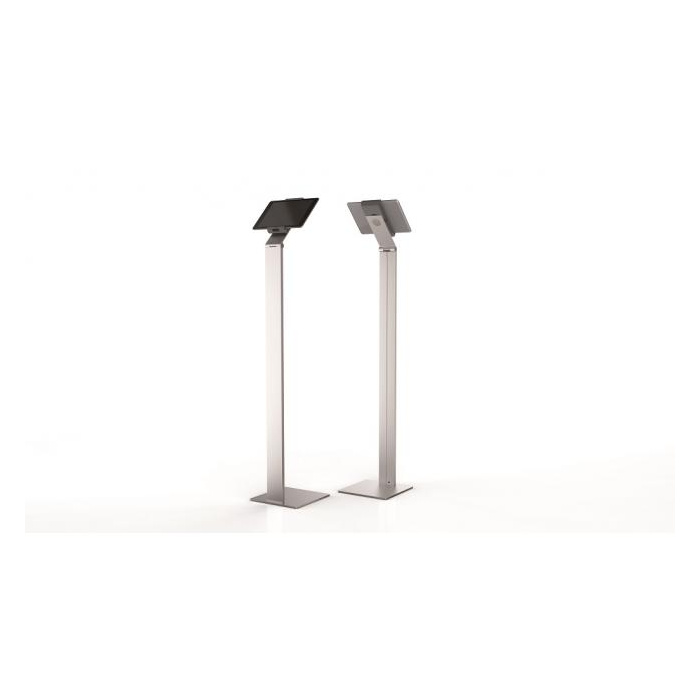Vysoko stabilný hliníkový podlahový stojan na tablety veľkosti 7 - 13`. Flexibilný uhol nastavenia sklonu ramena 0 - 88 stupňov, ochrana proti krádeži pomocou blokovacieho mechanizmu na úchytoch a s bezpečnostným slotom na základni na štandardný káblový zámok, kanál pre kábel s organizérom káblov, nastaviteľnom v celom rozsahu výšky. Dodávaný s USB káblom. Rozmery (š × v × h) 270 × 1215 × 270 mm.