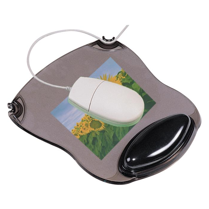 Ergonomická sivá gélová podložka pod myš a zápästie na uvoľnenie a zníženie napätia zápästia. Spodná pogumovaná strana zabraňuje kĺzaniu podložky po stole. Rozmery 220 × 28 × 260 mm. Príjemné transparentné farby.