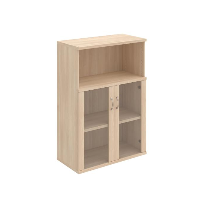 Kombinovaná skriňa - dvere/nika. Kancelárske skrine STRONG majú robustnú konštrukciu a vyššiu nosnosť políc ako bežné kancelárske skrine.V ponuke sú skriňové moduly s výškou 185 cm, 111 cm alebo 74 cm a šírky 80 cm alebo 40 cm. Hĺbka všetkých modelov skriňového radu STRONG je 40 cm.Chrbát, vyrobený z 8 mm hrubých dosák, je obojstranne pohľadový, takže skrine môžete použiť ako priestorový deliaci prvok. Hrúbka samotných políc je 25 mm, čo znamená nosnosť 80 kg na 1 policu.Korpusy, dvierka a police skríň sú olepené odolnou 2mm ABS hranou, ktorá garantuje dostatočnú ochranu proti poškodeniu.