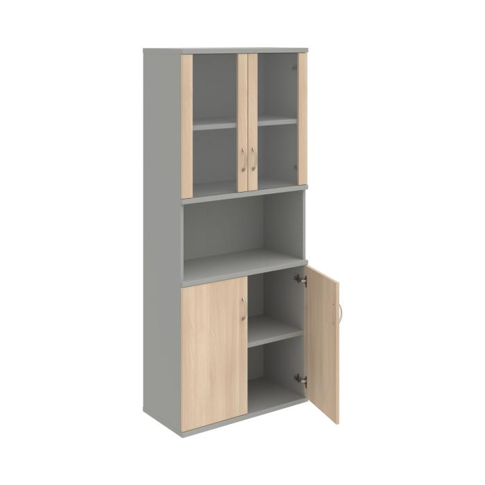 Kombinovaná skriňa - dvere/nika. Kancelárske skrine STRONG majú robustnú konštrukciu a vyššiu nosnosť políc ako bežné kancelárske skrine.V ponuke sú skriňové moduly s výškou 185 cm, 111 cm alebo 74 cm a šírky 80 cm alebo 40 cm. Hĺbka všetkých modelov skriňového radu STRONG je 40 cm.Chrbát, vyrobený z 8 mm hrubých dosák, je obojstranne pohľadový, takže skrine môžete použiť ako priestorový deliaci prvok. Hrúbka samotných políc je 25 mm, čo znamená nosnosť 80 kg na 1 policu.Korpusy, dvierka a police skríň sú olepené odolnou 2mm ABS hranou, ktorá garantuje dostatočnú ochranu proti poškodeniu.