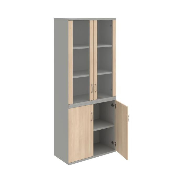 Kombinovaná skriňa - dvere/nika. Kancelárske skrine STRONG majú robustnú konštrukciu a vyššiu nosnosť políc ako bežné kancelárske skrine.V ponuke sú skriňové moduly s výškou 185 cm, 111 cm alebo 74 cm a šírky 80 cm alebo 40 cm. Hĺbka všetkých modelov skriňového radu STRONG je 40 cm.Chrbát, vyrobený z 8 mm hrubých dosák, je obojstranne pohľadový, takže skrine môžete použiť ako priestorový deliaci prvok. Hrúbka samotných políc je 25 mm, čo znamená nosnosť 80 kg na 1 policu.Korpusy, dvierka a police skríň sú olepené odolnou 2mm ABS hranou, ktorá garantuje dostatočnú ochranu proti poškodeniu.