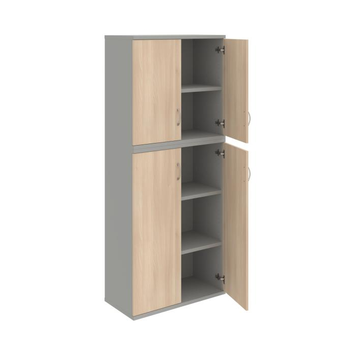 Kombinovaná skriňa - dvere/nika. Kancelárske skrine STRONG majú robustnú konštrukciu a vyššiu nosnosť políc ako bežné kancelárske skrine.V ponuke sú skriňové moduly s výškou 185 cm, 111 cm alebo 74 cm a šírky 80 cm alebo 40 cm. Hĺbka všetkých modelov skriňového radu STRONG je 40 cm.Chrbát, vyrobený z 8 mm hrubých dosák, je obojstranne pohľadový, takže skrine môžete použiť ako priestorový deliaci prvok. Hrúbka samotných políc je 25 mm, čo znamená nosnosť 80 kg na 1 policu.Korpusy, dvierka a police skríň sú olepené odolnou 2mm ABS hranou, ktorá garantuje dostatočnú ochranu proti poškodeniu.