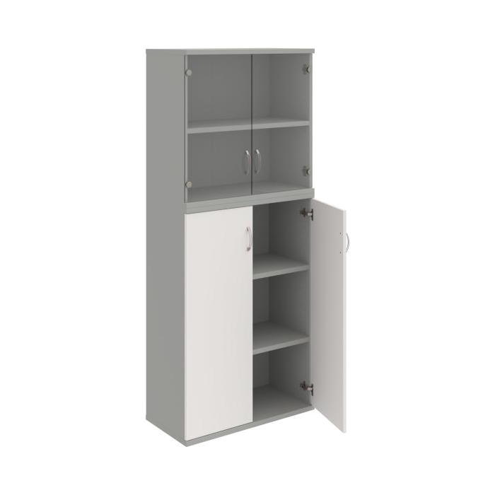 Kombinovaná skriňa - dvere/nika. Kancelárske skrine STRONG majú robustnú konštrukciu a vyššiu nosnosť políc ako bežné kancelárske skrine.V ponuke sú skriňové moduly s výškou 185 cm, 111 cm alebo 74 cm a šírky 80 cm alebo 40 cm. Hĺbka všetkých modelov skriňového radu STRONG je 40 cm.Chrbát, vyrobený z 8 mm hrubých dosák, je obojstranne pohľadový, takže skrine môžete použiť ako priestorový deliaci prvok. Hrúbka samotných políc je 25 mm, čo znamená nosnosť 80 kg na 1 policu.Korpusy, dvierka a police skríň sú olepené odolnou 2mm ABS hranou, ktorá garantuje dostatočnú ochranu proti poškodeniu.