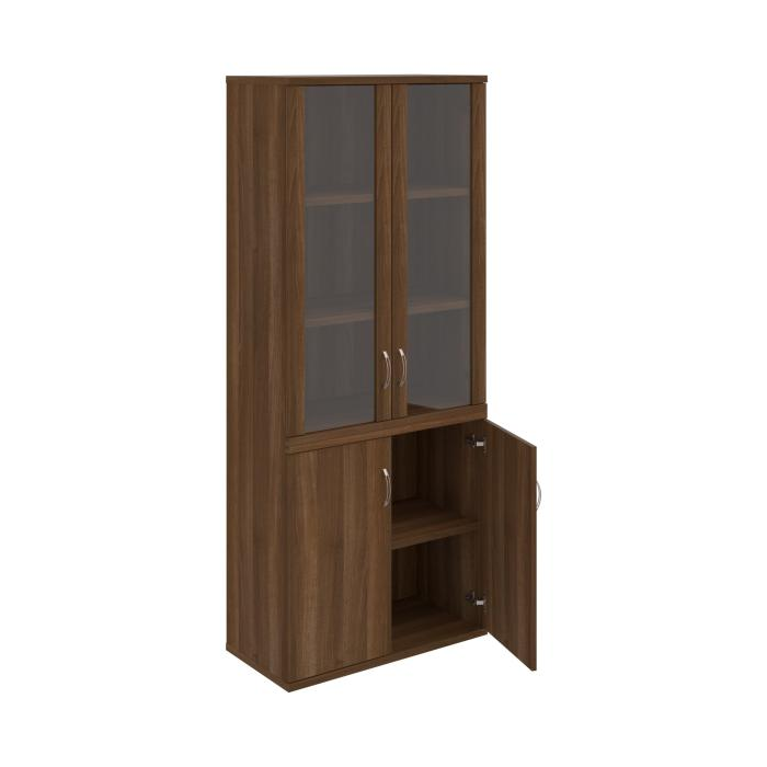 Kombinovaná skriňa - dvere/nika. Kancelárske skrine STRONG majú robustnú konštrukciu a vyššiu nosnosť políc ako bežné kancelárske skrine.V ponuke sú skriňové moduly s výškou 185 cm, 111 cm alebo 74 cm a šírky 80 cm alebo 40 cm. Hĺbka všetkých modelov skriňového radu STRONG je 40 cm.Chrbát, vyrobený z 8 mm hrubých dosák, je obojstranne pohľadový, takže skrine môžete použiť ako priestorový deliaci prvok. Hrúbka samotných políc je 25 mm, čo znamená nosnosť 80 kg na 1 policu.Korpusy, dvierka a police skríň sú olepené odolnou 2mm ABS hranou, ktorá garantuje dostatočnú ochranu proti poškodeniu.