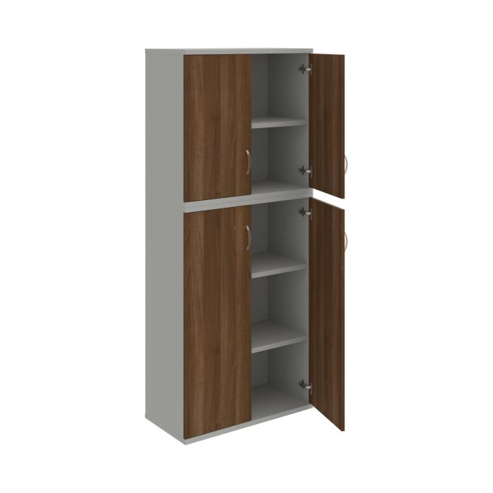Kombinovaná skriňa - dvere/nika. Kancelárske skrine STRONG majú robustnú konštrukciu a vyššiu nosnosť políc ako bežné kancelárske skrine.V ponuke sú skriňové moduly s výškou 185 cm, 111 cm alebo 74 cm a šírky 80 cm alebo 40 cm. Hĺbka všetkých modelov skriňového radu STRONG je 40 cm.Chrbát, vyrobený z 8 mm hrubých dosák, je obojstranne pohľadový, takže skrine môžete použiť ako priestorový deliaci prvok. Hrúbka samotných políc je 25 mm, čo znamená nosnosť 80 kg na 1 policu.Korpusy, dvierka a police skríň sú olepené odolnou 2mm ABS hranou, ktorá garantuje dostatočnú ochranu proti poškodeniu.
