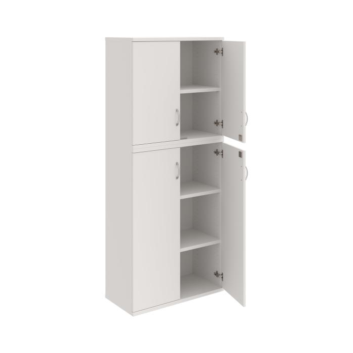 Kombinovaná skriňa - dvere/nika. Kancelárske skrine STRONG majú robustnú konštrukciu a vyššiu nosnosť políc ako bežné kancelárske skrine.V ponuke sú skriňové moduly s výškou 185 cm, 111 cm alebo 74 cm a šírky 80 cm alebo 40 cm. Hĺbka všetkých modelov skriňového radu STRONG je 40 cm.Chrbát, vyrobený z 8 mm hrubých dosák, je obojstranne pohľadový, takže skrine môžete použiť ako priestorový deliaci prvok. Hrúbka samotných políc je 25 mm, čo znamená nosnosť 80 kg na 1 policu.Korpusy, dvierka a police skríň sú olepené odolnou 2mm ABS hranou, ktorá garantuje dostatočnú ochranu proti poškodeniu.