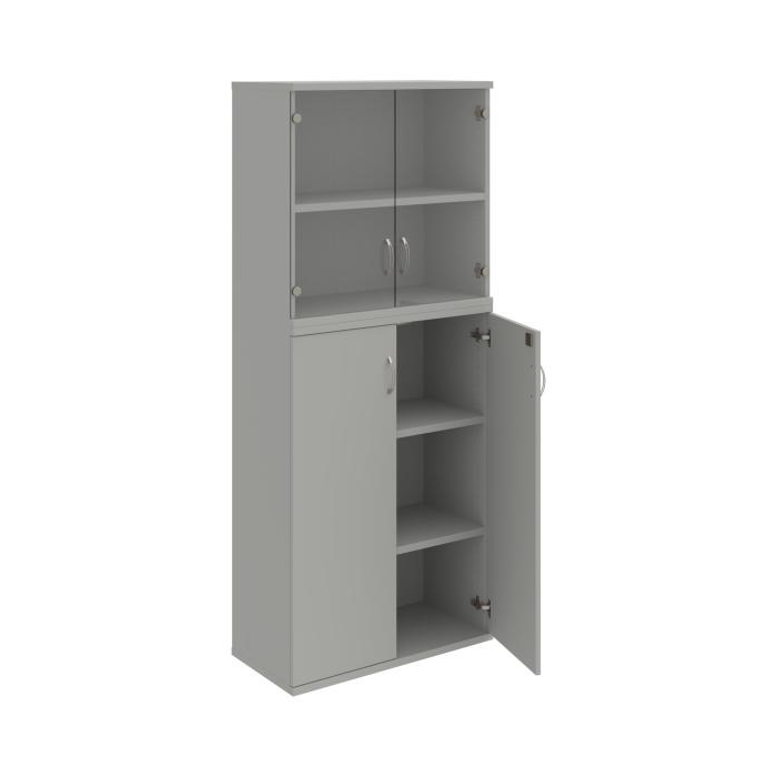 Kombinovaná skriňa - dvere/nika. Kancelárske skrine STRONG majú robustnú konštrukciu a vyššiu nosnosť políc ako bežné kancelárske skrine.V ponuke sú skriňové moduly s výškou 185 cm, 111 cm alebo 74 cm a šírky 80 cm alebo 40 cm. Hĺbka všetkých modelov skriňového radu STRONG je 40 cm.Chrbát, vyrobený z 8 mm hrubých dosák, je obojstranne pohľadový, takže skrine môžete použiť ako priestorový deliaci prvok. Hrúbka samotných políc je 25 mm, čo znamená nosnosť 80 kg na 1 policu.Korpusy, dvierka a police skríň sú olepené odolnou 2mm ABS hranou, ktorá garantuje dostatočnú ochranu proti poškodeniu.