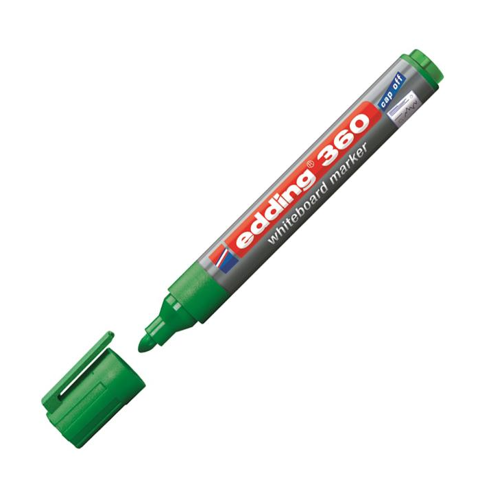 Popisovač vhodný na biele tabule, stierateľný za sucha. Plnený pigmentovým atramentom slabého zápachu bez prísady butylacetátu s vlastnosťou „Cap off“, zabraňujúcou vysychaniu atramentu pri otvorenom hrote aj niekoľko dní. Dopĺňateľný atramentom edding BTK 25. Plastové telo, vymeniteľný hrot. Hrot okrúhly, šírka stopy 1,5---3 mm. Väčšie balenie 10 ks.