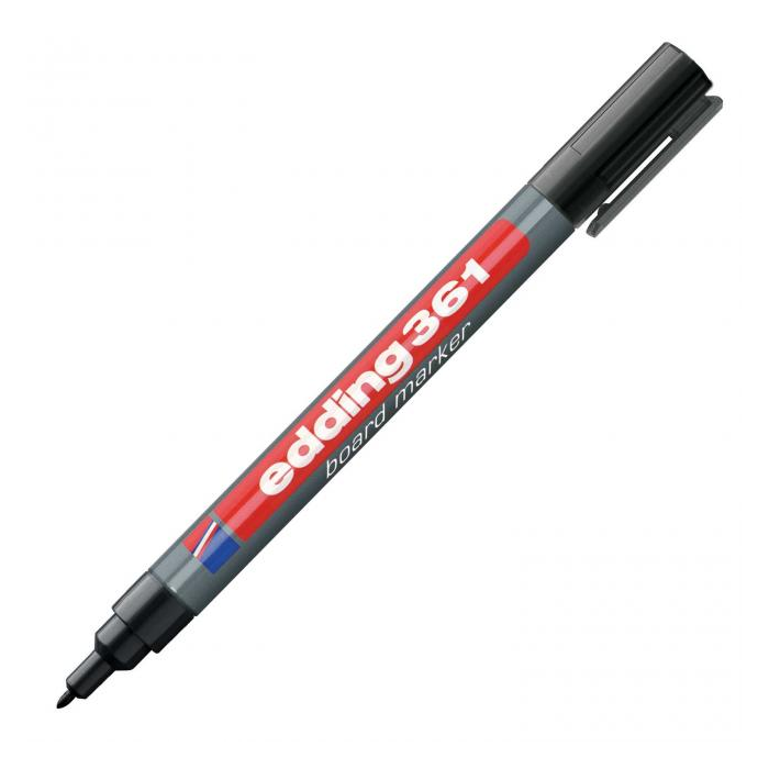 Popisovač na biele tabule za sucha stierateľné s plastovým telom a vymeniteľným hrotom. Dopĺňateľný atramentom edding BTK 25 alebo BT 30. Plastové telo, vymeniteľný hrot. Hrot okrúhly, šírka stopy 1 mm. Väčšie balenie 10 ks. Farba: čierna Šírka stopy: 1 mm Typ hrotu: okrúhly