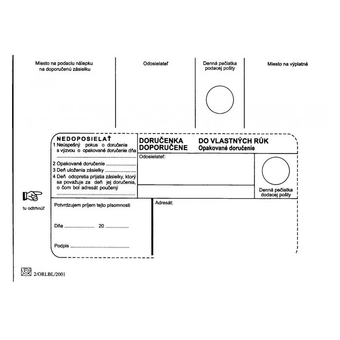 Biele papierové poštové obálky B6 s doručenkou do vlastných rúk - opakované doručenie rozmerov 125 × 176 mm s okienkom, popisom a lichobežníkovou klopou, 90 g/ m2. Balenie obsahuje 1000 ks.