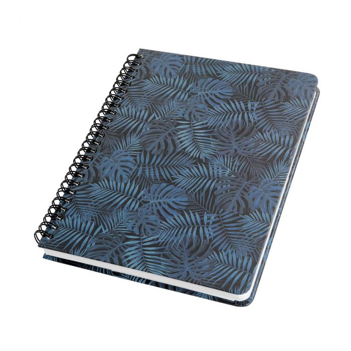 Moderný poznámkový blok s drôtenou špirálou na dlhšej strane a pevnými doskami. 120 strán formátu cca A5 (13,5 x 20,3 cm), bodkovaný podklad, papier gramáže 100 g s mikroperforáciou a certifikátom FSC aj pre písanie atramentom, zaoblené rohy.