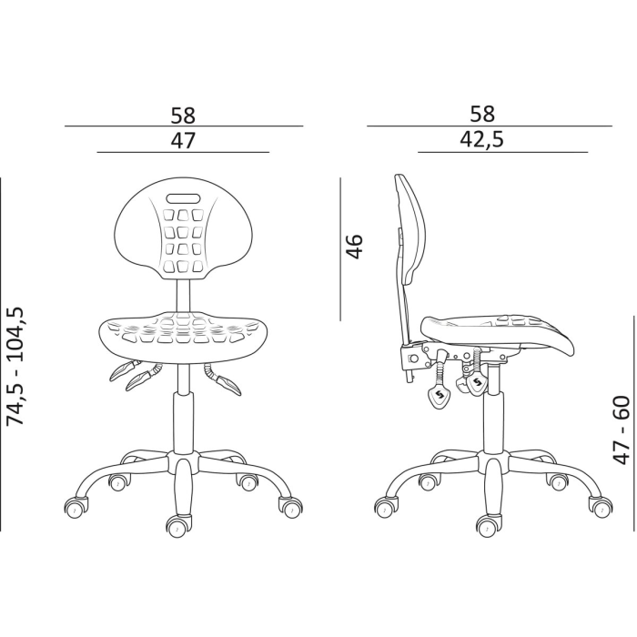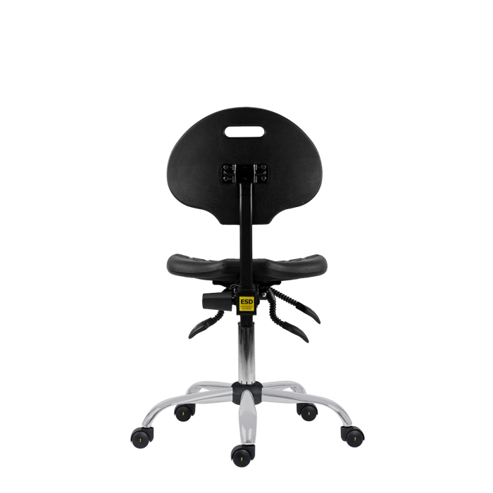 • pracovná otočná PU stolička s plne antistatickými ESD účinkami konštruovaná tak, aby odvádzala statickú elektrinu z pracoviska s prítomnosťou elektronických komponentov a prchavých chemikálií
