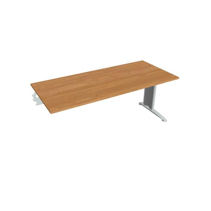 Kancelárský nábytok Flex sa vyznačuje elegantným dizajnom a originalitou technického riešenia. Pracovné dosky s optimálnými rozmermi a tvarom využívajú ergonomicky a efektívne celú pracovnú plochu. Pracovná doska stola má hrúbku 25 mm a je olepená 2mm ABS hranou, ktorá stoly pomáha chrániť pred poškodením. O káble od PC alebo stolovej lampy, sa postará praktická priechodka, ktorá káble jednoducho zvedie pod dosku, kde si s nimi poradia šikovne skonštruované držiaky. Moderné kovové nohy vás oslovia súčasným dizajnom a funkčnosťou. Prepojené sú teleskopickým káblovým kanálom, vďaka ktorému je stôl dokonale stabilný aj bez pracovnej dosky. Okrem toho slúži kanál aj ako elegantný úkryt pre vedenie všetkej kabeláže vášho PC, ktorá je potom pod plastovým krytom kovovej nohy zvedená k podlahe. Tento spôsob vychádza v ústrety aktuálnym trendom kompletne skrytej kabeláže.