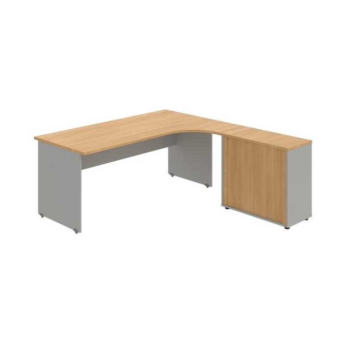 Nadčasový dizajn a užívateľská ústretovosť. Ergonomické tvary pre maximálne využitie pracovnej plochy. Vysoký stupeň súkromia - boky aj priečky z plných dosiek. Vysoká miera stability. Pracovná doska stola má hrúbku 25 mm a je vybavená 2mm ABS hranou, ktorá stoly pomáha chrániť pred poškodením. Dosky a priečky sú hrúbky 18 mm a ich odolnosť zaisťujú 2mm ABS hrany na vonkajšej aj vnútornej strane. Nohy sú osadené výškovo nastaviteľnou rektifikáciou, čo v prípade nerovnosti podlahy umožňuje dorovnať si stôl až o 1,5 cm. Stabilitu stola zaisťuje priečka, tzv. trnož, ktorá spája obe nohy stola. Trnož je vyrobená z plnej, 18 mm hrubej dosky. Široká škála kombinácií - 106 vzájomne kombinovateľných prvkov. Pre zabezpečenie čo najvyššieho komfortu sú v ponuke aj rohové pracovné stoly s ergonomicky tvarovanými doskami, ktoré zodpovedajú norme (STN EN 527-1). O káble od PC alebo stolovej lampy sa postará praktická priechodka, ktorá káble jednoducho zvedie pod dosku, kde si s nimi poradia múdro skonštruované držiaky. Konštrukcia stolov spĺňa vysoké nároky na kvalitu a ergonómiu (STN EN 527-1) a zodpovedá tak normám STN EN 527-2, STN EN 527-3, STN 910001 a STN 910100. Efektivitu dopravy do Vašej kancelárie zaisťujú dodávky jednotlivých dielov stola, ktoré sú bezpečne zabalené. Súčasťou každého balenia je tiež prehľadný návod. Na stoly GATE sa vzťahuje záruka 5 rokov.