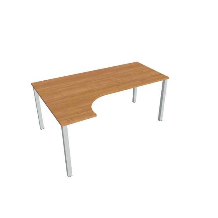 Stôl ergonomický pravý. Doska stola z kvalitného lamina. Pevná kovová konštrukcia podnožia zo štvorcových profilov 50 x 50 mm je tvorená kompaktnými pármi nôh, ktoré sú spojené priečnikmi. Výškovo nastaviteľná rektifikácia zaisťuje možnosť dorovnania prípadnej nerovnosti podlahy až o 1,5 cm. Stolová pracovná doska z LTD má hrúbku 25 mm a je zakončená 2mm hranou ABS, ktorá ju chráni pred poškodením. Samozrejmosťou sú káblové priechody a systém pre zavesenie káblov pod stolovou doskou. Možnosť objednania i v bielej farbe. Stolové doplnky, kontajnery a skrine vyberajte z ponuky kancelárskeho nábytku Hobis. Aby sa zásielka dostala v poriadku až do Vašej kancelárie, dodávame stoly demontované v niekoľkých samostatných a bezpečne zabalených škatuliach. Súčasťou každého balenia je tiež prehľadný návod. Na stoly UNI sa vzťahuje záruka 5 rokov. Farebnosť je ilustratívna.