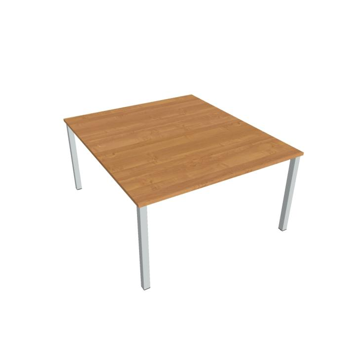 Zdvojený pracovný stôl rovný. Doska stola z kvalitného lamina. Pevná kovová konštrukcia podnožia zo štvorcových profilov 50 x 50 mm je tvorená kompaktnými pármi nôh, ktoré sú spojené priečnikmi. Výškovo nastaviteľná rektifikácia zaisťuje možnosť dorovnania prípadnej nerovnosti podlahy až o 1,5 cm. Stolová pracovná doska z LTD má hrúbku 25 mm a je zakončená 2mm hranou ABS, ktorá ju chráni pred poškodením. Samozrejmosťou sú káblové priechodky a systém pre zavesenie káblov pod stolovou doskou. Možnosť objednania bieleho či sivého prevedenia podnožia. Stolové doplnky, kontajnery a skrine vyberajte z ponuky kancelárskeho nábytku Hobis. Aby sa zásielka dostala v poriadku až do Vašej kancelárie, dodávame stoly demontované v niekoľkých samostatných a bezpečne zabalených škatuliach. Súčasťou každého balenia je tiež prehľadný návod. Na stoly UNI sa vzťahuje záruka 5 rokov. Farebnosť je ilustratívna.