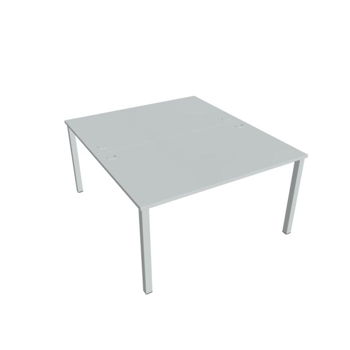 Zdvojený pracovný stôl rovný. Doska stola z kvalitného lamina. Pevná kovová konštrukcia podnožia zo štvorcových profilov 50 x 50 mm je tvorená kompaktnými pármi nôh, ktoré sú spojené priečnikmi. Výškovo nastaviteľná rektifikácia zaisťuje možnosť dorovnania prípadnej nerovnosti podlahy až o 1,5 cm. Stolová pracovná doska z LTD má hrúbku 25 mm a je zakončená 2mm hranou ABS, ktorá ju chráni pred poškodením. Samozrejmosťou sú káblové priechodky a systém pre zavesenie káblov pod stolovou doskou. Možnosť objednania bieleho či sivého prevedenia podnožia. Stolové doplnky, kontajnery a skrine vyberajte z ponuky kancelárskeho nábytku Hobis. Aby sa zásielka dostala v poriadku až do Vašej kancelárie, dodávame stoly demontované v niekoľkých samostatných a bezpečne zabalených škatuliach. Súčasťou každého balenia je tiež prehľadný návod. Na stoly UNI sa vzťahuje záruka 5 rokov. Farebnosť je ilustratívna.