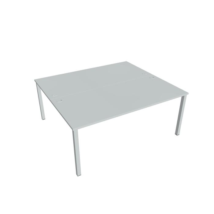 Zdvojený pracovný stôl rovný. Doska stola z kvalitného lamina. Pevná kovová konštrukcia podnožia zo štvorcových profilov 50 x 50 mm je tvorená kompaktnými pármi nôh, ktoré sú spojené priečnikmi. Výškovo nastaviteľná rektifikácia zaisťuje možnosť dorovnania prípadnej nerovnosti podlahy až o 1,5 cm. Stolová pracovná doska z LTD má hrúbku 25 mm a je zakončená 2mm hranou ABS, ktorá ju chráni pred poškodením. Samozrejmosťou sú káblové priechodky a systém pre zavesenie káblov pod stolovou doskou. Možnosť objednania bieleho či sivého prevedenia podnožia. Stolové doplnky, kontajnery a skrine vyberajte z ponuky kancelárskeho nábytku Hobis. Aby sa zásielka dostala v poriadku až do Vašej kancelárie, dodávame stoly demontované v niekoľkých samostatných a bezpečne zabalených škatuliach. Súčasťou každého balenia je tiež prehľadný návod. Na stoly UNI sa vzťahuje záruka 5 rokov. Farebnosť je ilustratívna.