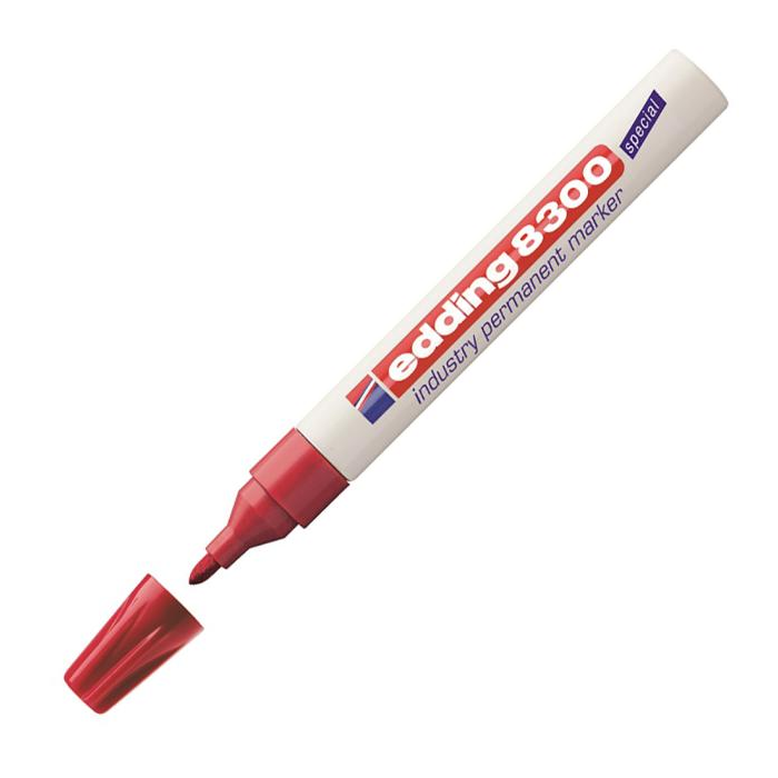 Permanentný popisovač určený predovšetkým na priemyslové použitie, pretože je obzvlášť vhodný na popisovanie mierne mastných a zaprášených povrchov. Rýchloschnúci atrament na báze xylénu je vysoko odolný voči oderu, vode, svetlu a má vynikajúce krycie vlastnosti. Okrúhly hrot. Šírka stopy 1,5-3 mm. Farba: červená.