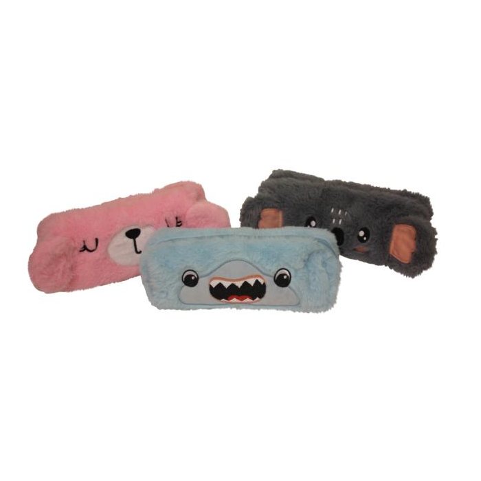 Puzdro na perá s 1 zipsom, 3 rôzne vzory/farby, plyšový materiál, s vyšívanými tváričkami zvieratiek a podšívkou. Rozmery ŠxVxH: 20,5x5x7 cm