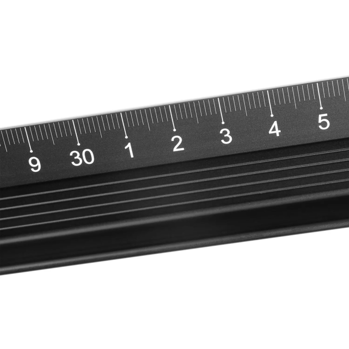Vysokokvalitné rezacie pravítko z čierneho eloxovaného hliníka pre dlhú životnosť. Ľahko čitateľné centimetre pre maximálnu presnosť pri rezaní. 4 mm vysoká rezná hrana zaisťuje presné rezanie. Vysoký chránič proti prerezaniu (12,5 mm), ktorý účinne zabraňuje poraneniu prstov. Vyvýšený hrebeň zabraňuje rozmazaniu atramentu. Žiadne skĺznutie pri kreslení alebo strihaní vďaka 15 mm širokému protišmykovému pásiku na spodnej strane. Dĺžka 45 cm.