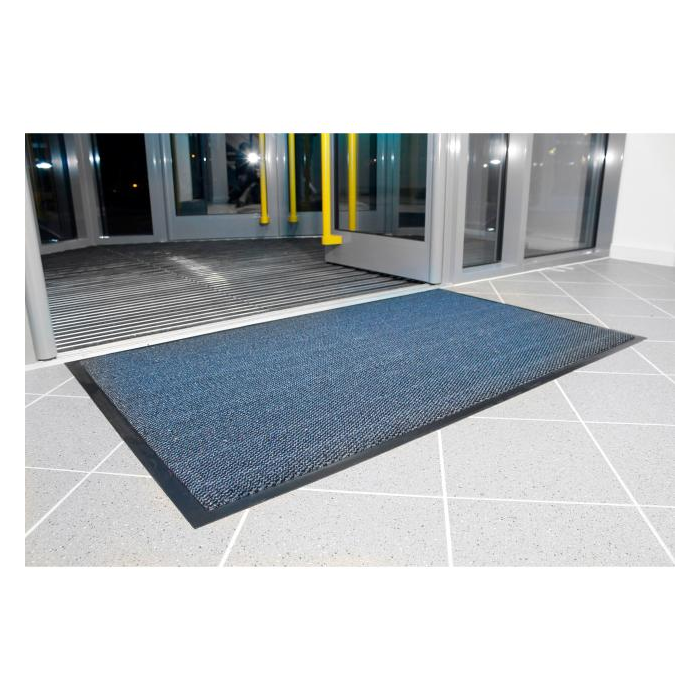 Ekonomická a účinná stieracia rohož vhodná do vstupných priestorov, hál a chodieb. Rubová strana z PVC s úpravou proti pošmyknutiu a znečisteniu, materiál vlasu je 100 % polypropylén. Výška 7 mm. Rozmery 120 x 180 cm. Farba čierna/modrá.