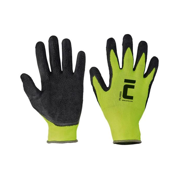 Rukavice nylonové, latexové PALAWAN, čierno/zelené, veľ. 8/M