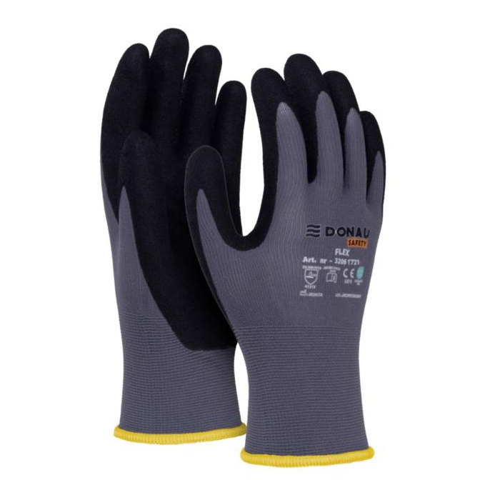 Rukavice pletené, polomáčané DONAU SAFETY Flex, kat. II sivé veľ. 8