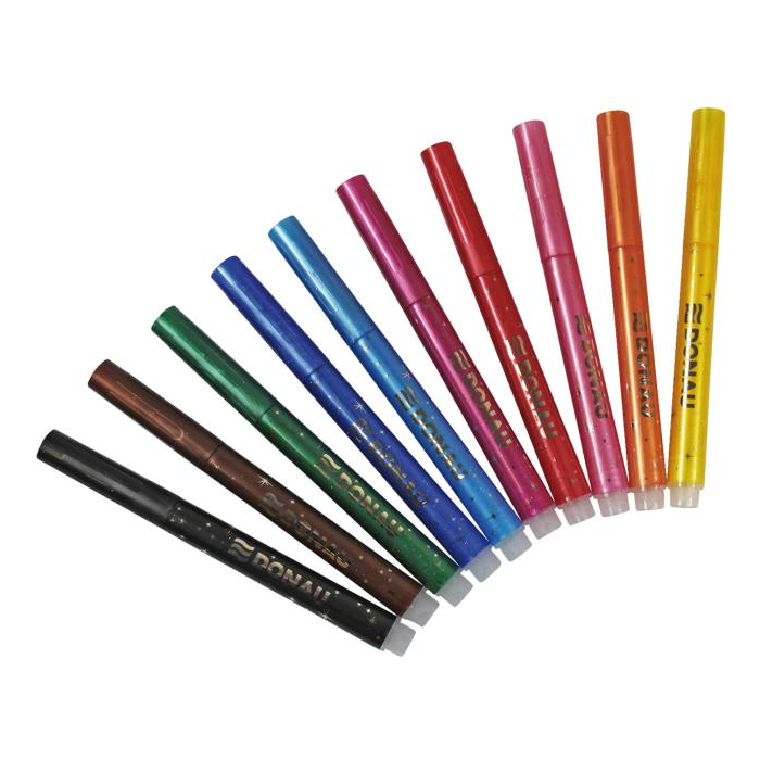 Sada glitrových popisovačov DONAU s vláknovým hrotom 10S. Glitrové popisovače s vláknovitým hrotom, 10 farieb v balení.