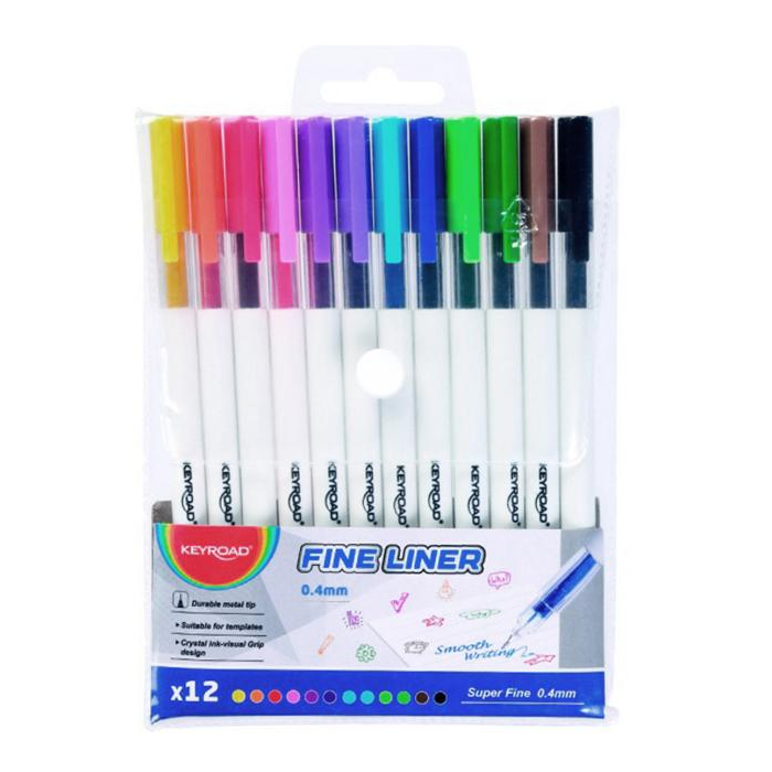 Sada 12 ks fine linerov, 0,4 mm. Odolné proti vysychaniu, hrot s kovovým rámom, atrament na vodnej báze bez zápachu, odolné voči svetlu. Farba: mix 12 farieb.