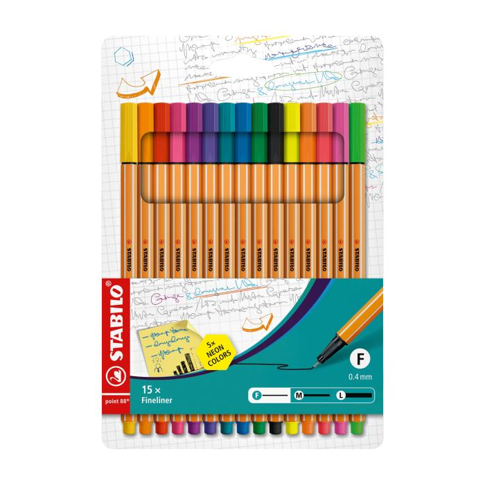 Veľmi obľúbený jednorazový liner na atramentovej báze. Vhodný na písanie a rysovanie podľa šablóny alebo pravítka. Kovové puzdro hrotu zaisťuje dlhú životnosť. Šírka stopy 0,4 mm. Sada 10 farieb.