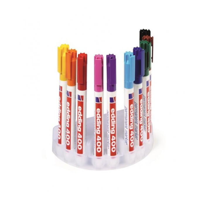 Permanentný popisovač vhodný na popisovanie, značenie a vyznačovanie takmer na všetky materiály vrátane kovu, skla a umelých hmôt. Plastový obal. Dopĺňateľný atramentom edding T 25. Okrúhly hrot, šírka stopy 1 mm. Dodávané v sade 10 ks.