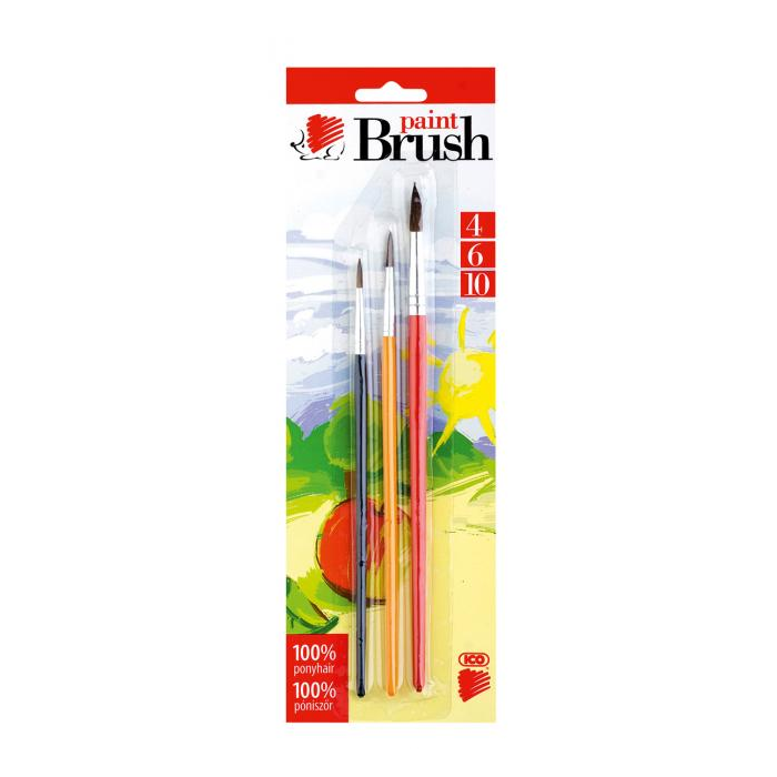 3 kusová sada guľatých školských štetcov s farebnou rúčkou. Štetina 100% poník. Ideálne na maľovanie vodovými a temperovými farbami. Šírka štetiny 4-6-10 mm.