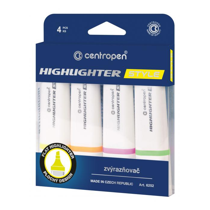 Zvýrazňovač v modernom dizajne pre hladké a pohodlné zvýraznenie textu s klinovým hrotom so šírkou stopy 1 - 4,6 mm. Plnený fl uorescenčným atramentom, vhodným na všetky druhy papierov. Väčšie balenie 10 ks v jednej farbe. Farba mix.