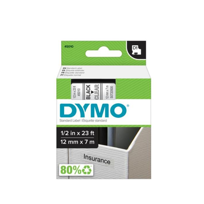 Permanentné pásky odolné voči vode, olejom, organickým zlúčeninám. Podkladová páska, text a lepidlo odolávajú teplotám -30 °C až do +150 °C. Majú dobrú priľnavosť na ABS, PVC, PE, Acrylic, sklo, drevo, papier a nerezovú oceľ. Sú určené pre Dymo zariadenia. Šírka : 12 mm