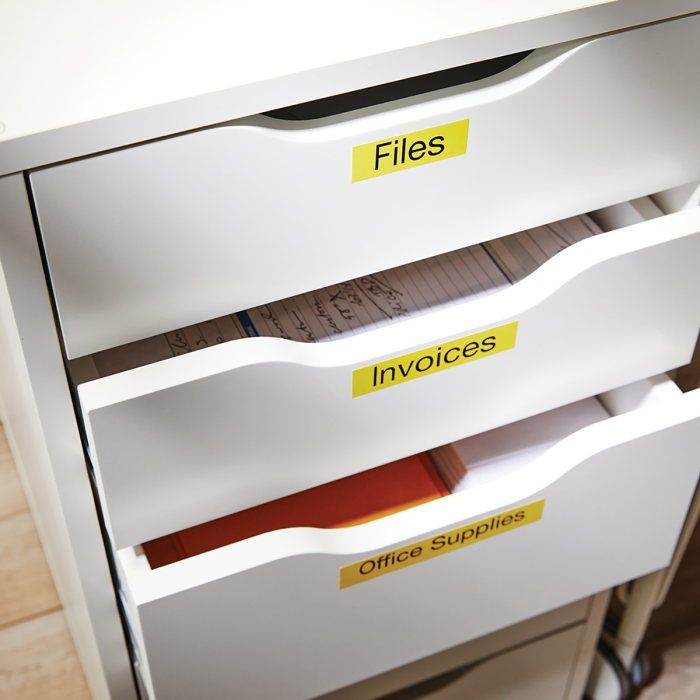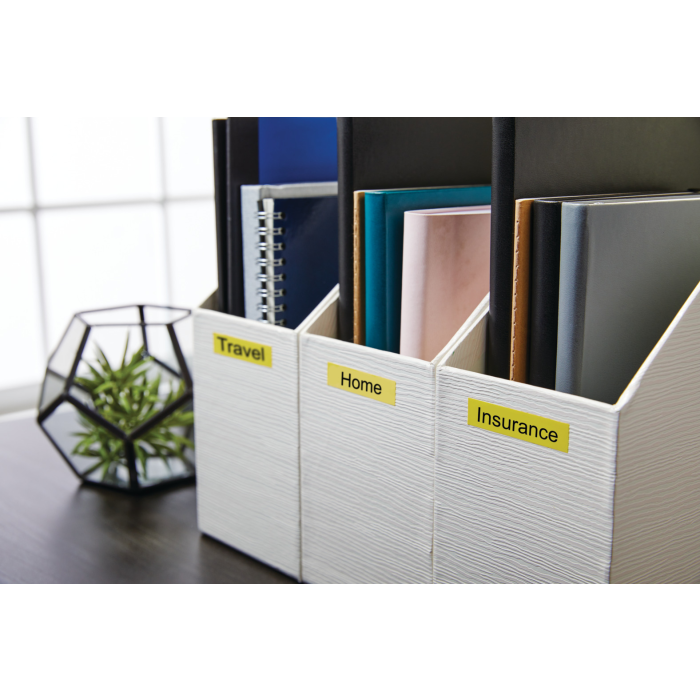 Permanentné pásky odolné voči vode, olejom, organickým zlúčeninám. Podkladová páska, text a lepidlo odolávajú teplotám -30 °C až do +150 °C. Majú dobrú priľnavosť na ABS, PVC, PE, Acrylic, sklo, drevo, papier a nerezovú oceľ. Sú určené pre Dymo zariadenia. Dĺžka 7 m.