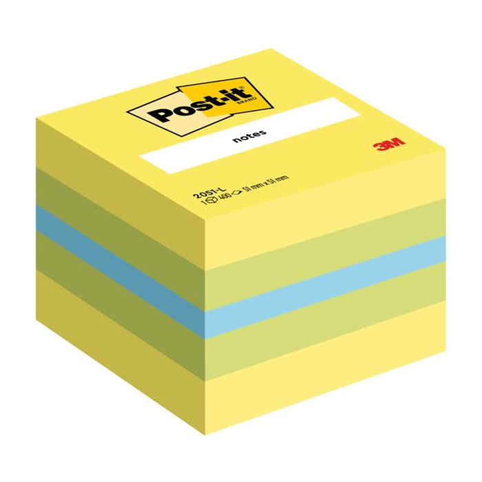 Malé samolepiace lístky v tvare kocky, 400 lístkové, v 3 farbách: neónová žltá (2 × 100 lístkov), ultramodrá (50 lístkov), ultrazelená (2 × 75 lístkov).