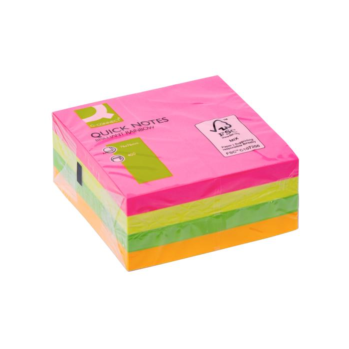 Samolepiaci bloček Q-CONNECT 76x76 mm, 400 l, neónová