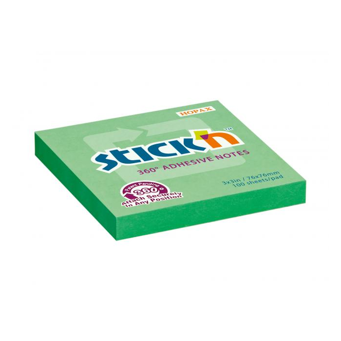 Samolepiaci bloček Stick’n Hopax, 360°, 76x76 mm, zelený