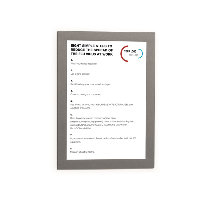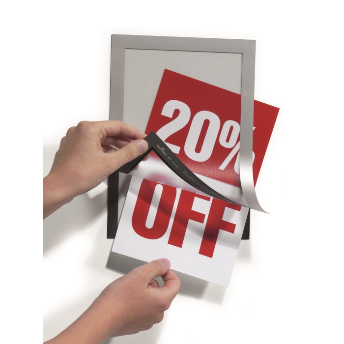 Samolepiaci informačný panel s prednou magnetickou časťou. Ideálny na vystavovanie kľúčových informácií, špeciálnych oznamov alebo dôležitých čísel. Informácie sa ľahko vymieňajú a sú čitateľné z oboch strán, ak sa panel umiestni napr. na okno alebo priehľadné dvere. Vhodný na hladké a pevné povrchy. V prípade potreby je ľahko premiestniteľný bez potreby vŕtania. Formát A5, farba rámu strieborná. V balení 2 ks.