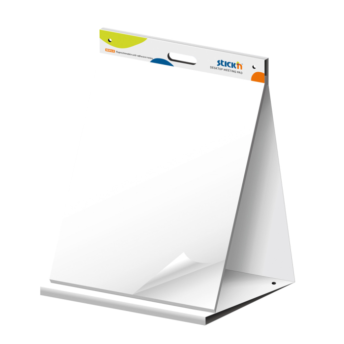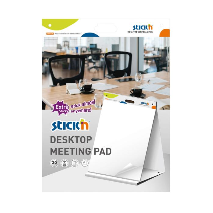 Samolepiaci stolný flipchart s horným pruhom silného lepidla urobí z akejkoľvek kancelárie zasadaciu miestnosť. Kvalitný papier nepresakuje. Perfektný pre bežné povrchy v každej kancelárii, nezanechávajú stopy po lepidle. 20 listov, biely, prevedenie na stôl. Rozmery : 584× 508 mm.