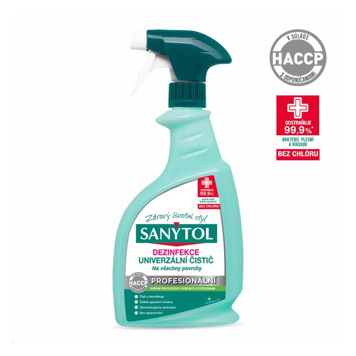 Univerzálny sprej vhodný na mnoho povrchov. Neobsahuje chlór, čistí a dezinfikuje v jednom kroku. Je vhodný na povrchy, ktoré prichádzajú do kontaktu s potravinami. Je vhodný do hotelov a reštaurácií, gastroprevádzok, školských zariadení, na sanitárne zariadenia, na potreby a starostlivosť o dieťa a na doplnky pre domáce zvieratá.