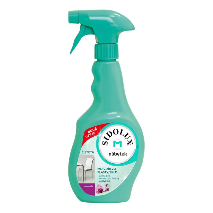 Dokonale čistí sklenené povrchy, plasty, nábytok z MDF, drevený nábytok. Antistatické zložky tvoria na povrchu ochrannú vrstvu. Nesteká z povrchov. Nezanecháva šmuhy.