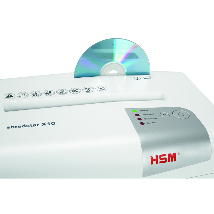Profesionálna ochrana údajov na pracovisku. Tento praktický skartovač dokumentov pre domácu kanceláriu s rezaním častíc a samostatnou rezacou jednotkou CD bezpečne skartuje súbory a disky CD/DVD. CD, DVD, plastové karty a spinky možno ľahko skartovať pomocou samostatnej jednotky na rezanie CD. Rozdrvený materiál sa samostatne separuje. LED indikátor zobrazuje prevádzkový stav zariadenia: napájanie, preťaženie, prehriatie, zásobník je plný.