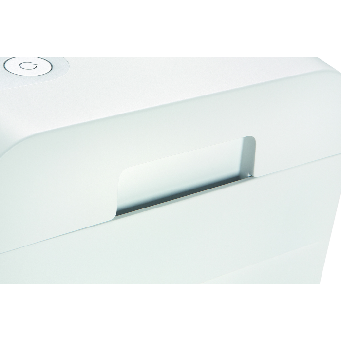 LED indikátor zobrazuje prevádzkový stav zariadenia: napájanie, preťaženie, prehriatie, zásobník je plný. Integrovaná svetelná závora automaticky spustí zariadenie po vložení papiera do podávača a automaticky sa zastaví po dokončení skartovania. Hladinu naplnenia odpadovej nádoby je možné kedykoľvek vidieť cez kontrolné okienko. Na vyprázdnenie odpadovej nádoby sa kryt vrchnej časti dá ľahko odstrániť. Veľkosť rezu: 2 x 15 mm, kapacita 6 listov. Šírka vstupu 220 mm, objem odpadového koša 20 l. Rozmery 345 x 245 x 445 mm (šxhxv), hmotnosť 6,3 kg.
