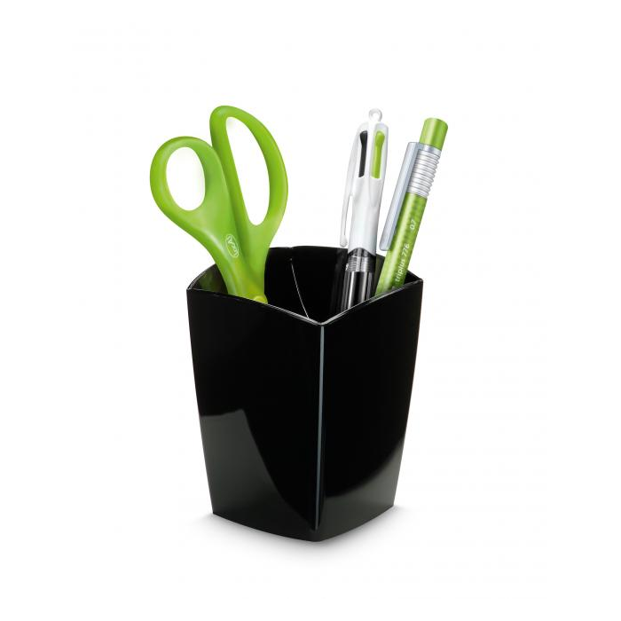 Stojan na ceruzky a perá v modernom dizajne, vhodný do kancelárie, aj do bytu. Vynikajúca stabilita, dve priehradky. Kapacita 32 pier, celkové rozmery 74 × 74 × 95 mm. Materiál 100% recyklovateľný, vysokokvalitný plast. Stojan GreenSpirit v čiernej farbe je vyrobený zo 100% recyklovaných materiálov, jednotlivé kusy sa môžu navzájom jemne farebne líšiť. Väčšie balenie 12 ks. Farba čierna.