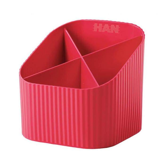 Atraktívny stojan na perá z novej produktovej rady HAN LOOP. Materiál vysokokvalitný PP, extrémne odolný voči prasknutiu. Úprava nepriehľadná, trendové farby. Väčšie balenie 6 ks. Farba červená.