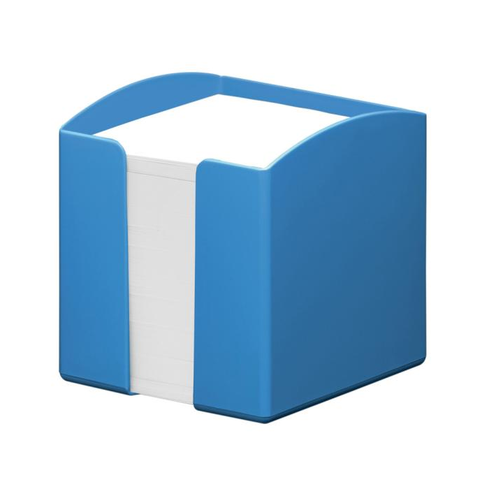 Stojan na poznámkový blok z recyklovaných plastov v kvalite Blue Angel. S 800 lístkami recyklovaného papiera v kvalite Blue Angel, veľkosť 93 x 93 mm. Rozmery: 100 x 105 x 100 mm (Š x V x H). Farba modrá.