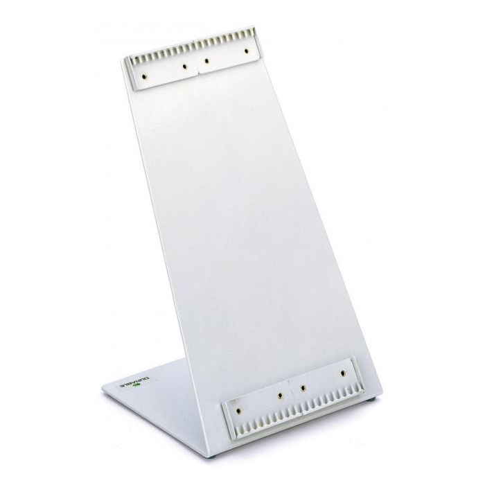 Extrémne pevný odľahčený kovový stojan v tvare L. Plastový poťah odolný voči oderu. Dodávaný prázdny s kapacitou na 20 panelov. Farba sivá. Kapacita panelov: 20 Dodávaný: bez panelov