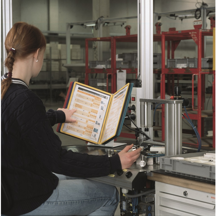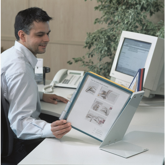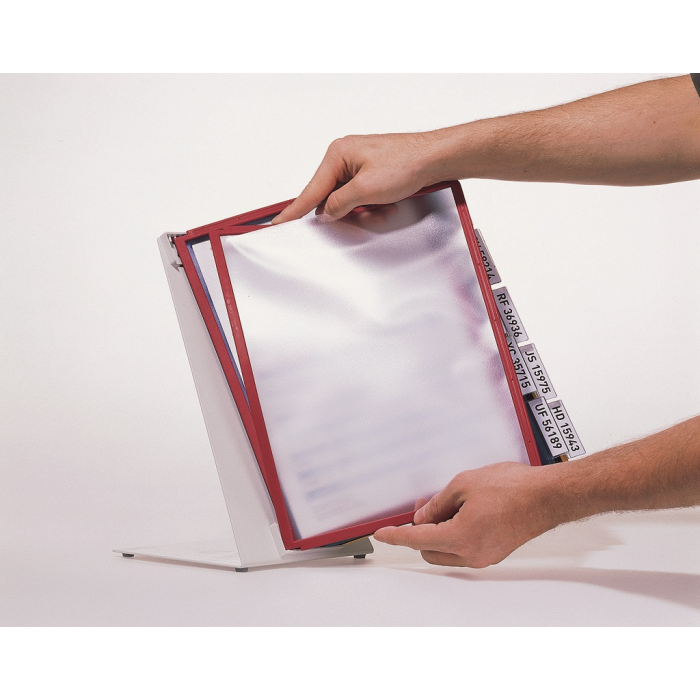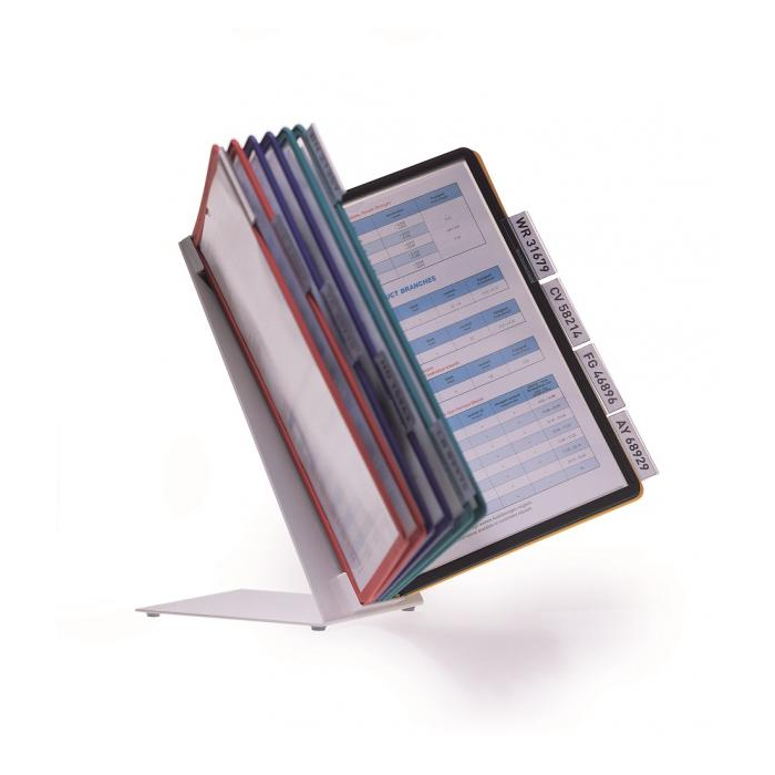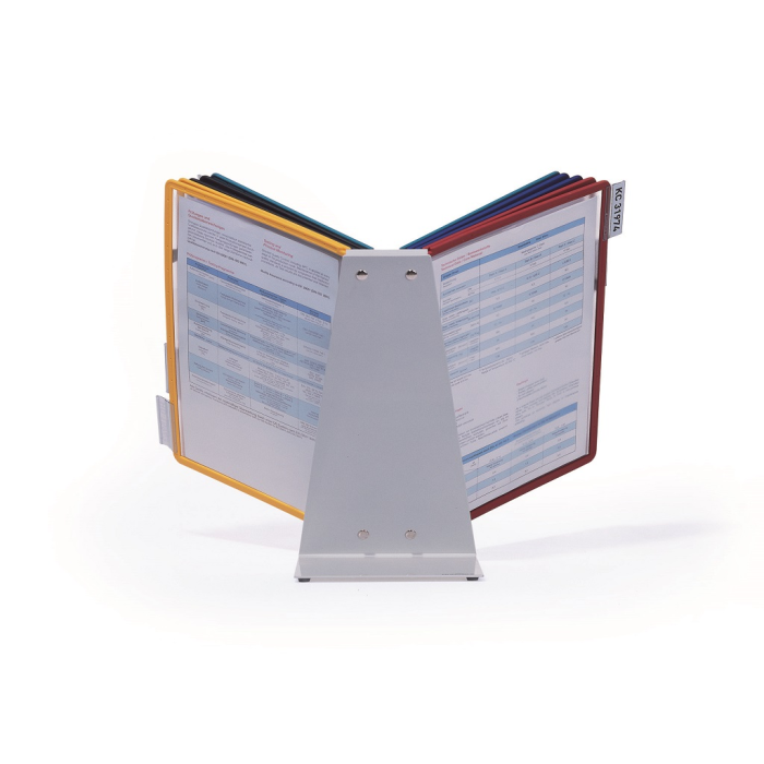 Extrémne pevný stojan na stôl v tvare L. Vyrobený z kovovej platne s plastovým poťahom odolným voči oderu. Ideálny na použitie v dielňach, skladoch, priemysle a kuchyniach. Dodávaný s 10 polypropylénovými panelmi SHERPA v mixe farieb (čierna, červená, žltá, zelená a tmavomodrá).